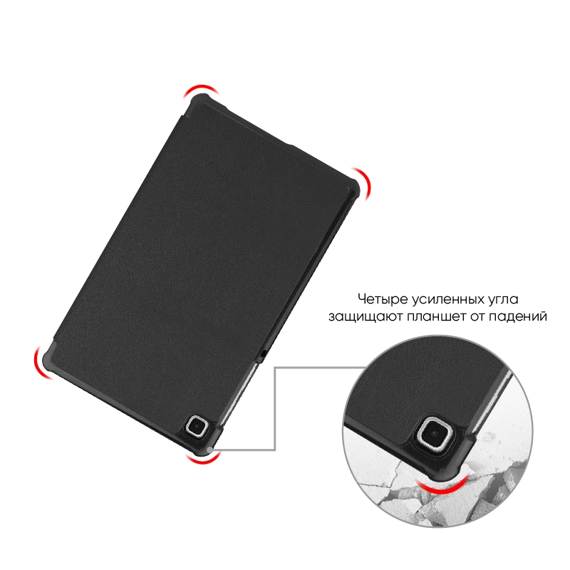 • Функция подставки. Благодаря пластиковым вставкам вы можете фиксировать планшет под разными углами. Наклон 65° идеален для просмотра видео, а 30° будет комфортен для работы и набора текста на сенсорной клавиатуре.