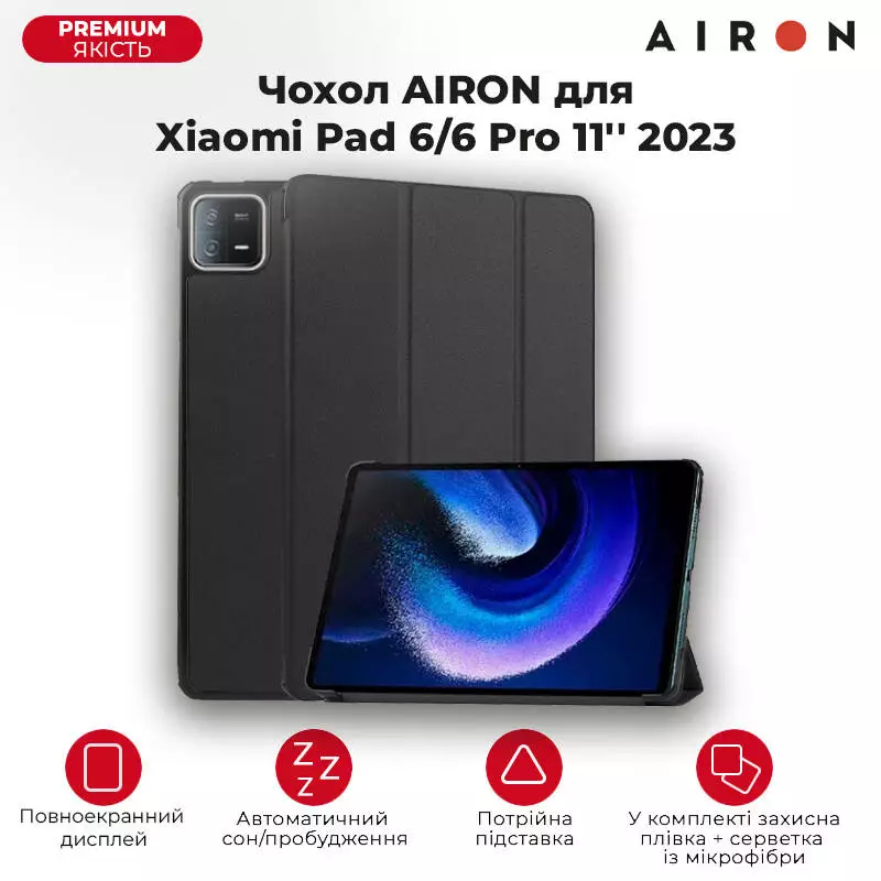 Чехол AIRON Premium для Xiaomi Pad 6/6 Pro 11'' 2023 с защитной пленкой и салфеткой Black