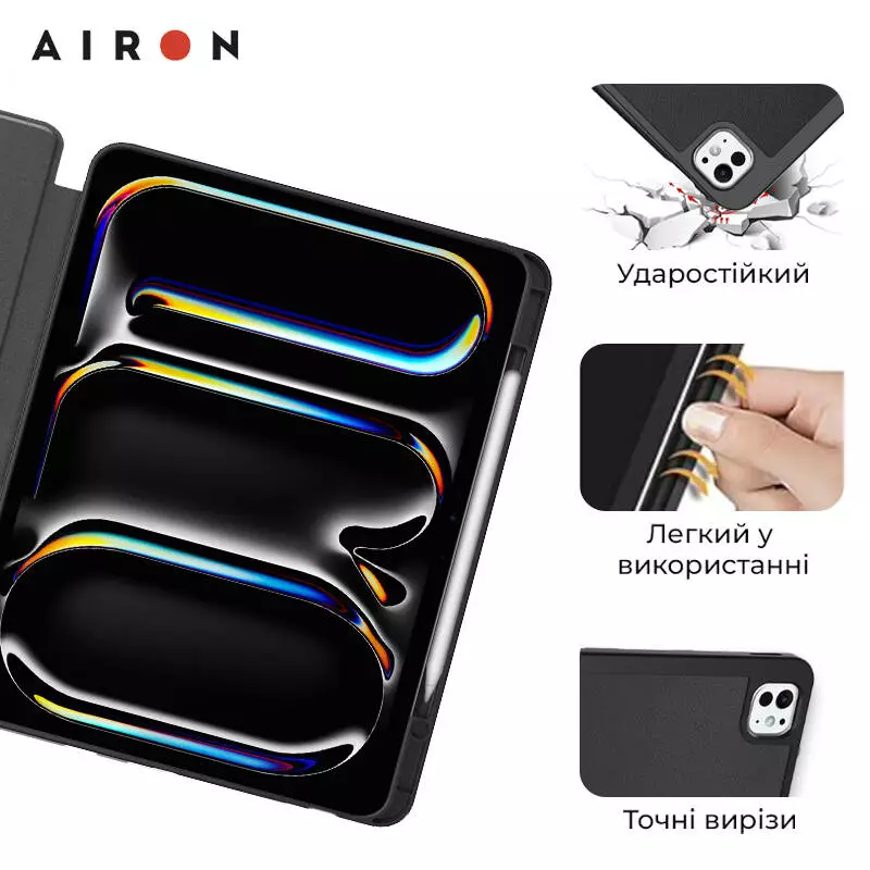 Чехол AIRON Premium SOFT для iPad Pro 11 2024 с защитной пленкой и салфеткой Black