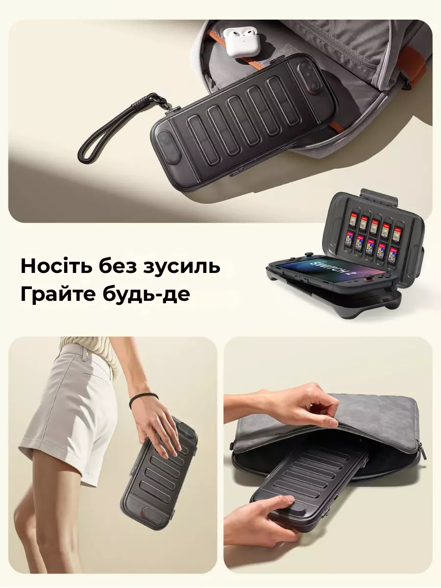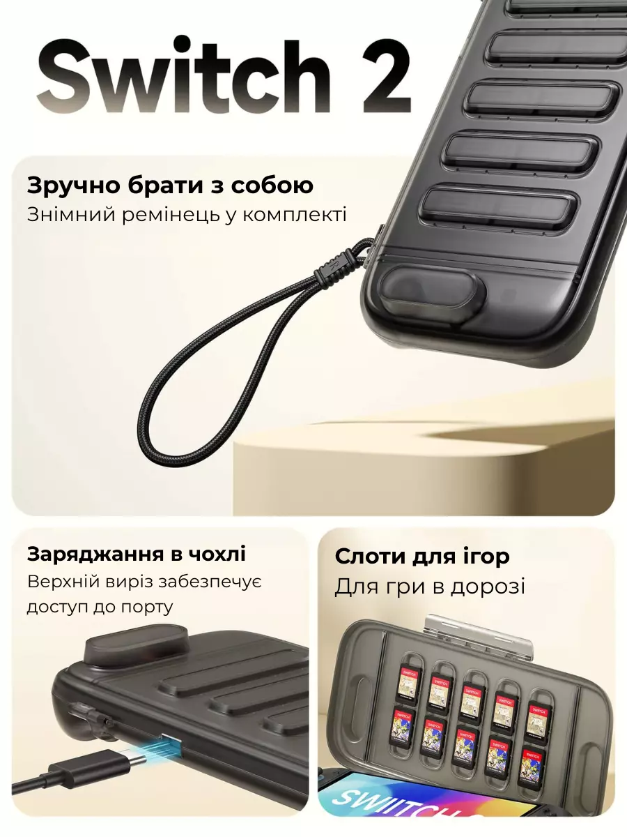 защищает Switch 2 от падений, ударов, пыли и брызг воды.