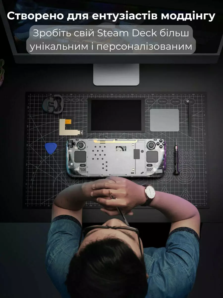 Этот аксессуар изготовлен из высококачественных и прочных материалов, обеспечивающих надежность и долговечность устройства. Прозрачная передняя панель позволяет четко увидеть внутренние компоненты Steam Deck, открывая широкие возможности для индивидуальной DIY-настройки (DIY – работа своими руками, требующая определенного опыта).