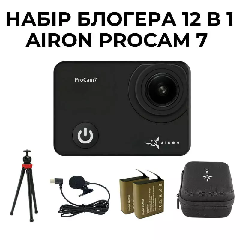 Набір для блогера 12 в 1: екшн-камера AIRON ProCam 7 Black з аксесуарами