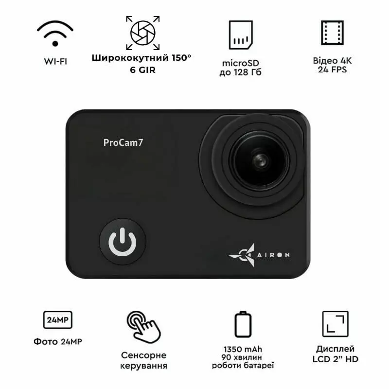 С AIRON ProCam 7 Black ваши видео станут профессиональными, а процесс съемки – легким и удобным!
