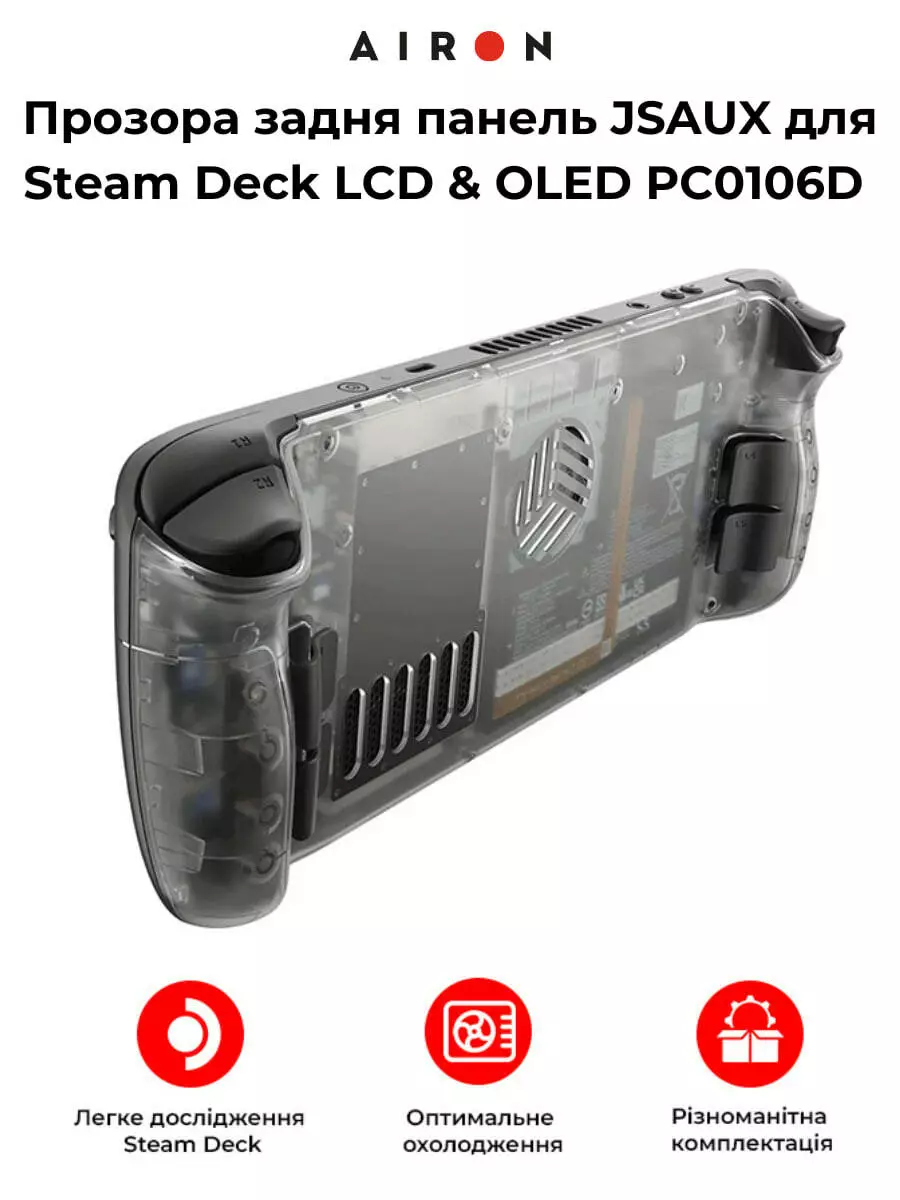 Задня панель JSAUX для Steam Deck LCD & OLED PC0106D з додатковою вентиляцією (Прозора)