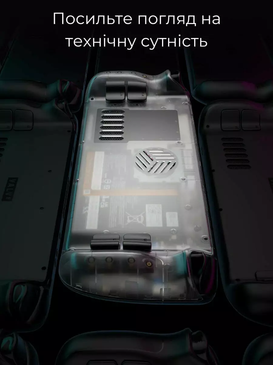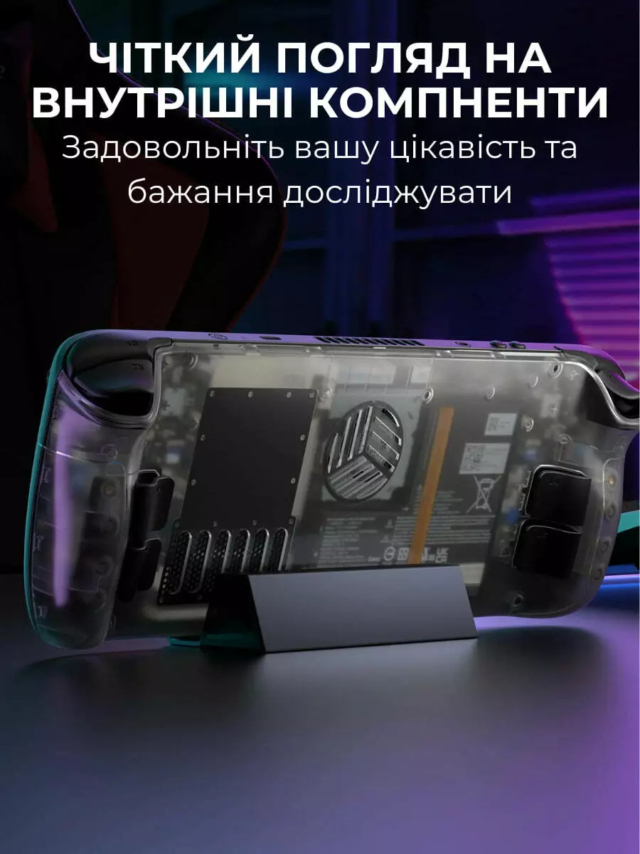 Яркая RGB-подсветка придаст вашему Steam Deck LCD & OLED уникальный облик, а прозрачная задняя панель откроет внутреннюю конструкцию устройства, создавая эффект кастомизации.