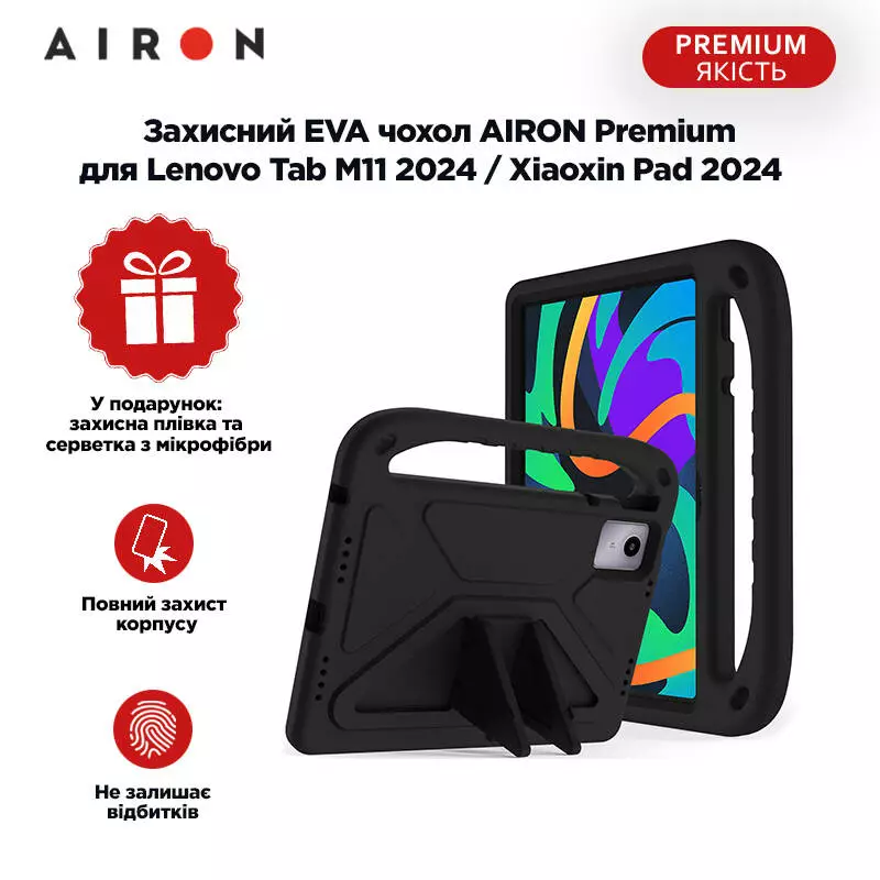 Получите больше с AIRON Premium! Вместе с чехлом в подарок – защитная плёнка и салфетка из микрофибры, чтобы экран вашего планшета всегда был чистым и защищённым.